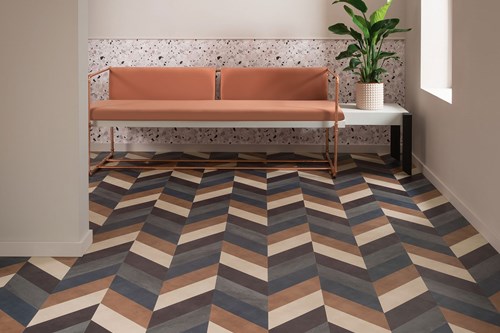 ‘These include: Aspekt, a scaled parquet-style design split into shards and triangles; and Passo, a versatile design inspired by modern ceramics that will create a striking feature in modern hospitality and retail environments.’