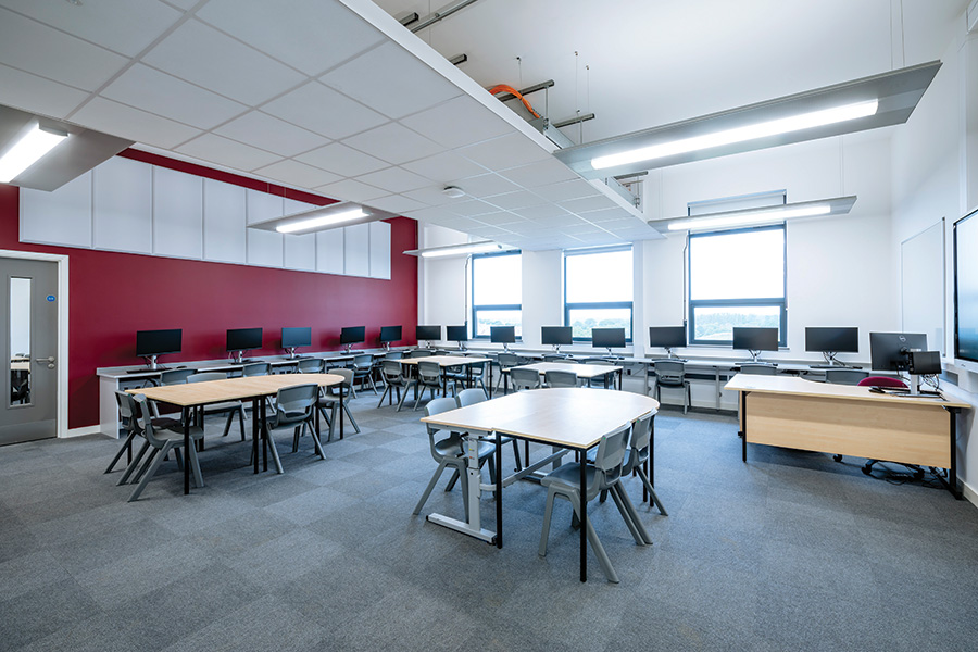 The floor installation within the new three-storey building included a selection of Gerflor’s Vinyl Safety, Homogeneous & ESD Flooring and Burmatex cordiale carpet tiles throughout classrooms and school office areas.