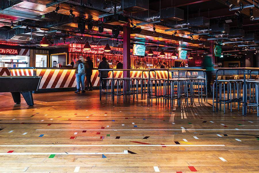 The building also houses a performance studio with Junckers’ sprung SylvaSport Beech flooring and the one-of-a-kind Union Bar which has been fitted with a reclaimed Junckers’ sports floor. With the old line markings intact, the floor has a rustic, industrial look which will hide a multitude of sins in a busy student bar. It was finished with Junckers’ High Performance Friction+ lacquer to provide a slip-resistant surface.