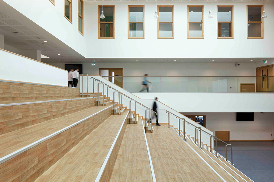 The Mapei system was used to prepare subfloors and install flooring throughout the main hall, classrooms and corridors, stairs, drama rooms, kitchen, food tech, and science labs, IT areas, WCs, stores and stairs.