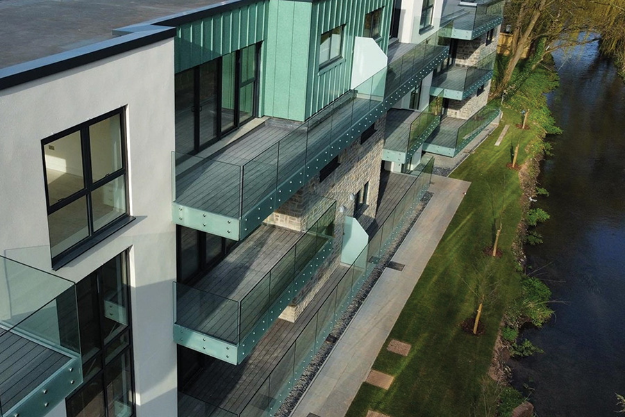 The stunning three-storey development, by Knox & Wells, includes two and three bedroom apartments with south-facing balconies overlooking the River Thaw. The project was completed by Kimpton Flooring.