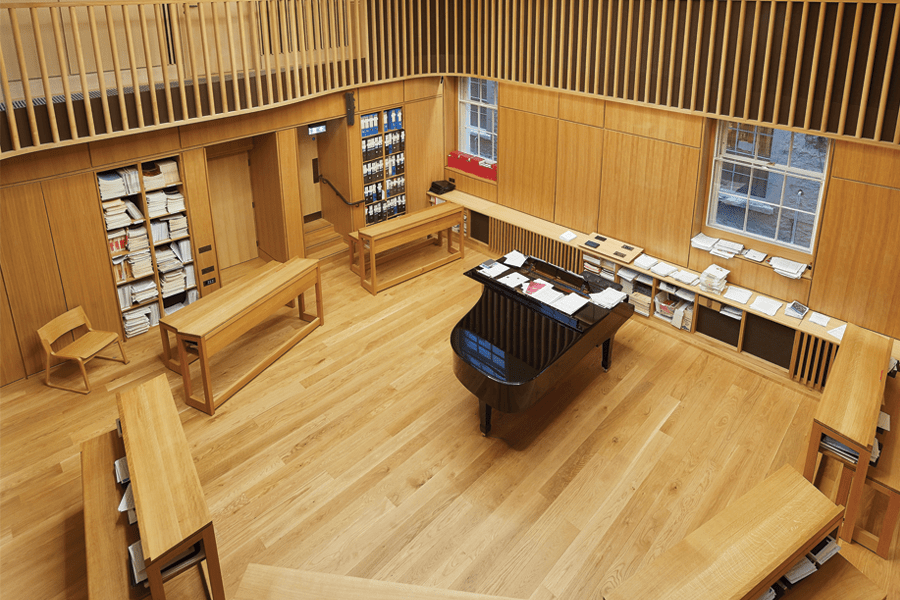The historic Bath Abbey has undergone extensive repair and conservation work along with the addition of new facilities. With its Footprint project, Feilden Clegg Bradley Studios sensitively restored the 1,300-year-old place of worship and improved the accessibility, flexibility and sustainability of the building. As part of reworking and improving the Abbey’s back of house facilities, FCBStudios designed the Song School, a new, timber-lined choir practice room where up to 60 singers can rehearse. The oak-panelled room features Junckers solid 20.5mm Oak Harmony plank flooring installed by Moran Floors. The solid oak further enhances the acoustics in the room, an important consideration to the Abbey.