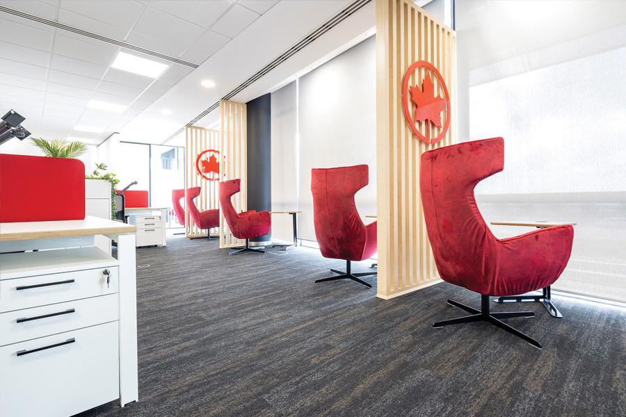 WITH a striking view of one of the world’s busiest airports, the offices of Air Canada feature Rudiments Clay Create carpet planks from IVC Commercial.
