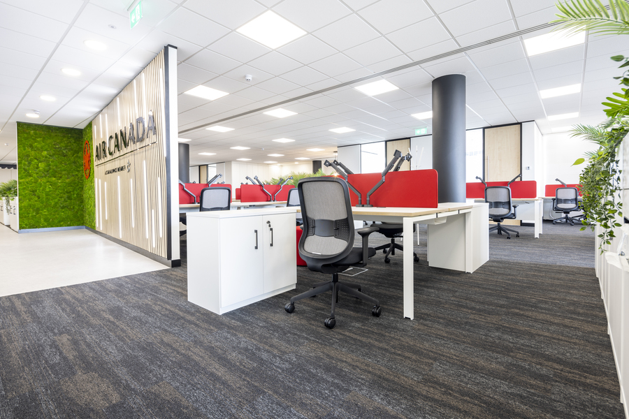 Air Canada’s Heathrow office has a spectacular view of the airport’s runways and is the working home of more than 60 colleagues. The airline called in design and fit-out specialist, 3-Space to create an interior that reflected its brand, and which could withstand constant use from staff and visitors.