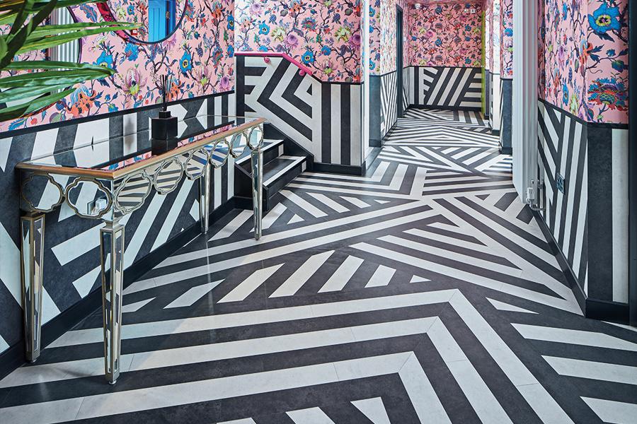 Charlton Hall in Northumberland is a wedding venue that has created a truly unique look with a stylish bespoke floor. In line with the hotel’s eccentric personality, a quirky geometric floor design has been created with hand-cut black and white tiles and combined with bold wall designs for an unexpected look that captures the imagination and ensures the hotel stands out from the crowd.