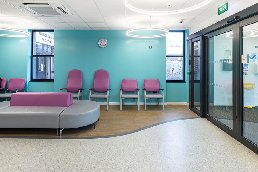 Using Altro adhesive-free floors can halve installation time compared with a traditional adhered installation, which made a huge difference on this project. ‘Installation was completed over two nights – if we had used a stuck-down floor, this would have taken four nights, causing disruption to our patients and staff,’ says Jordan Beaumont.