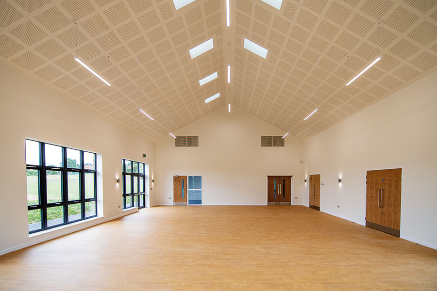 In keeping with surrounding properties, the community hub is constructed in red/buff brick, with pitched tiled roofs and PPC Aluminium windows and doors. The building comprises two separate halves: a community side with a vaulted hall space and a large area with changing facilities.