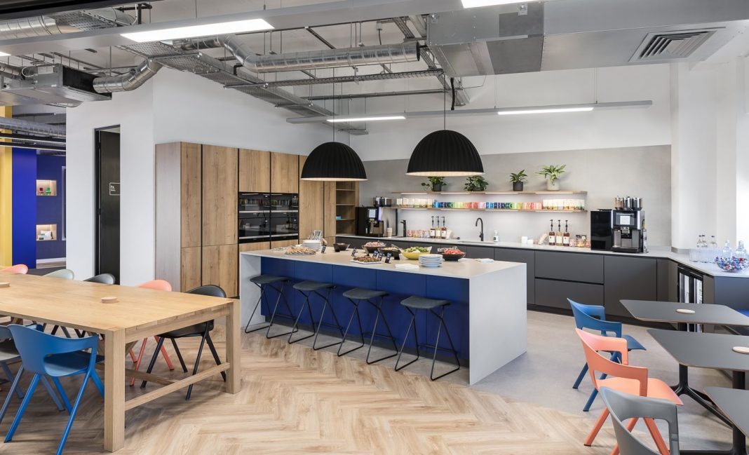 The answer saw a design inspired by bright and bold colours with an open space to encourage collaboration. At the heart of the scheme is a flooring layout to support the zoning of the space, using IVC Commercial’s Studio Moods and Moduleo 55 Luxury Vinyl Tiles to ground the interior in nature and to add a calming and restful influence.