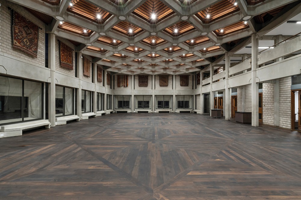As part of a sensitive renovation to enhance the original architecture and to ensure the building’s sustainable future, Junckers solid wood flooring was fitted in the famous dining hall and in the servery. Informed by historic drawings and photographs, Purcell specified a dark wooden floor, thus reverting to the original floor finish found in the building. Junckers Black Oak plank flooring was fitted in a bespoke geometric pattern designed by the architect, complementing the elaborate ceiling features.