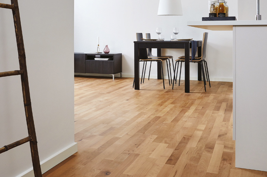 Flooring made in solid wood is well-known for its long lifespan. It can be sanded and refinished many times to restore it to as-new condition. Junckers oak, beech and maple floors are designed and made to last for generations, even a well-used sports floor has a lifespan of 60 plus years, says the company.