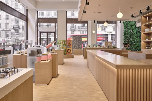 ARCHITECTS Matteo Bazzicalupo and Raffaella Mangiarotti of deepdesign, alongside industrial designer, Edoardo Radice were responsible for the design of Smeg’s new showroom, making significant use of KERAKOLL products. The interior design is said to be minimalist but made warm and welcoming using stone and wood. Features such as glass surfaces, large modular display furniture, counter tops in marble, unfilled travertine, and wooden slats cascade down the staircase.