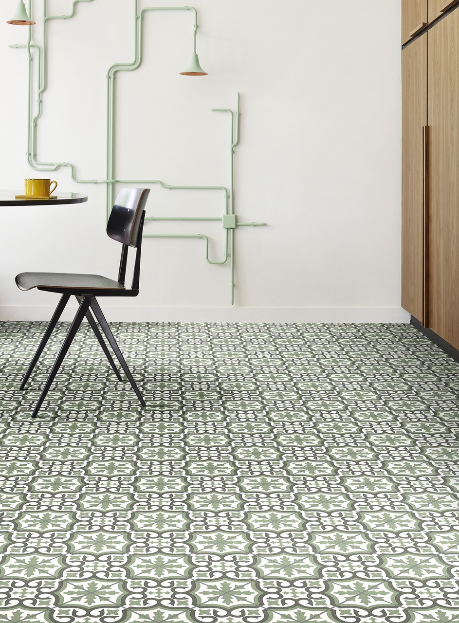 Design-wise, the floor features an extraordinarily wide choice of options: wood planks in every grain, herringbone, stone and ceramic tile designs all make an appearance in this comprehensive range. All feature Beauflor’s Natural Look matt textured surface for added authenticity. New designs include Artena wood herringbone, the multi-coloured square tile of Vichy and the geometric Newburgh. With such a fabulous choice of patterns Feelings has something for every home.