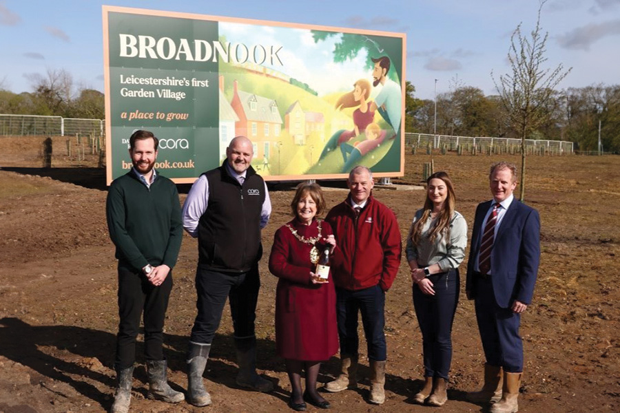 BROADNOOK Garden Village, Leicestershire’s newest and ‘most exciting community building project’, has marked the start of construction with the erection of a landmark sign that’s reportedly guaranteed to put Leicestershire’s first Garden Village on the map.