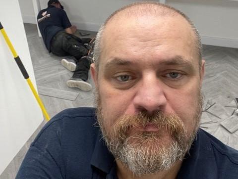 ‘We carry out commercial and domestic work. On the commercial side, we’ve worked with big names such as Skanska, completed a few prisons in the private and state sector including Doncaster Prison, and we’ve worked on hospitals in Derby and Mansfield, among other contract work. I, Simon, used to be an active floorlayer myself but I’ve been off my knees now for about 16 years as it caught up with my hands, knees and back. I began to feel knee pain in my late 20s and stopped when I was 38. I used to complete the installations so I know both sides of the coin – both technical and selling. But sometimes when we’re exceptionally busy, I still muck in. I was recently supposed to be at a good friend’s birthday party but a job ran over so I helped out. I sent a selfie to my friend saying: ‘This is where I am; I’m not coming, not because I don’t want to but rather because I’m stuck here.’ The job entailed completing Omega Kitchens in LVT click herringbone. A subbie couldn’t make it so me and the other lads worked until 8pm every night until the job was completed. The installations I’m most proud of include the mental health hospital in a Coventry Hospital with Tarkett and Marley throughout and it looked fantastic.’