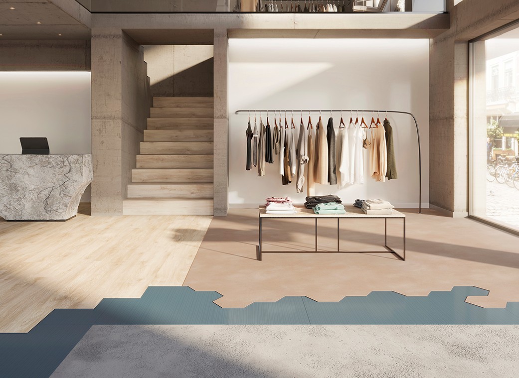 For installations using more complex plank or tile arrangements, such as herringbone or the multi-shape tiles of Moduleo’s Moods collection, Flex Pro Pure also allows for easy corrections with pieces simply lifted and repositioned. This is also advantageous if areas become damaged as planks or tiles can be quickly and easily replaced without disruption.