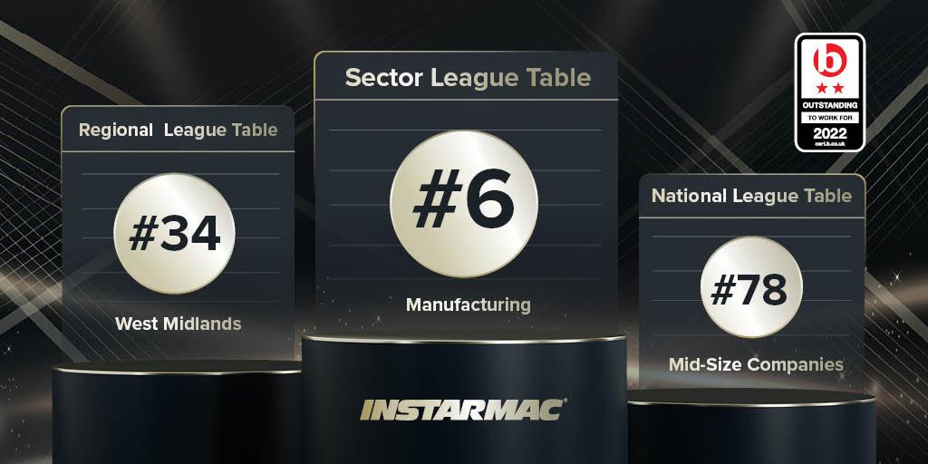 On top of what it describes as its unbelievable performance in the manufacturing league table, Staffordshire-based Instarmac Group also placed 78 in The UK’s 100 Best Mid-Sized Companies and number 34 in The West Midlands’ 100 Best Companies.