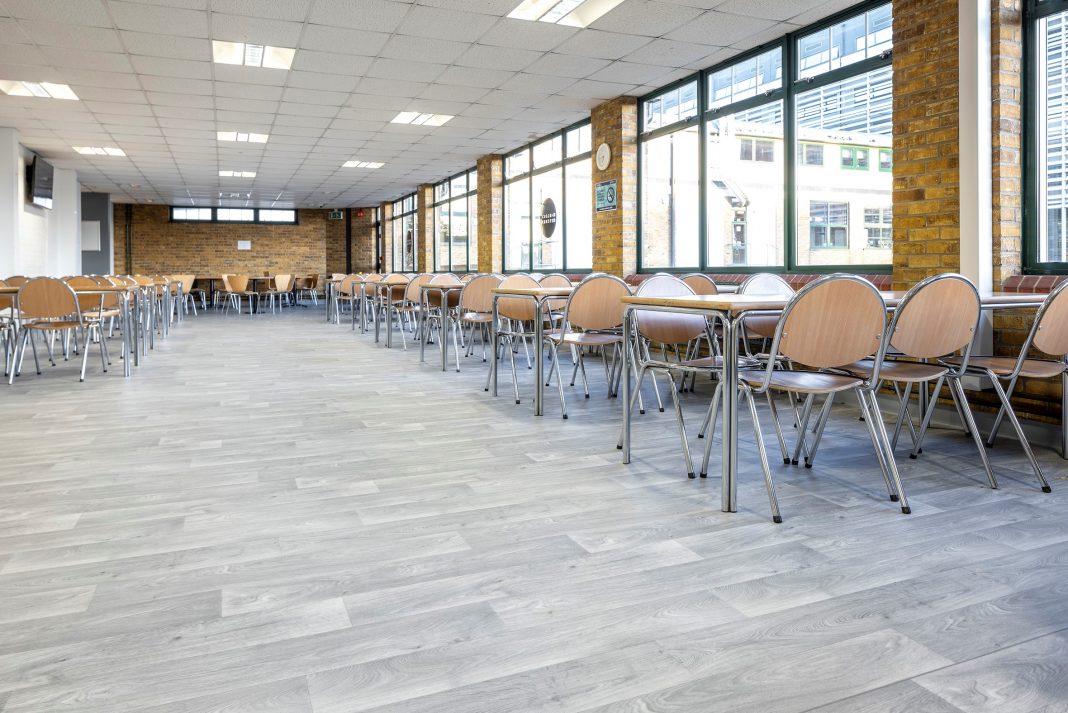 Installer Persha Carpets & Flooring gave Colchester Institute a range of suitable flooring options to consider. With Colchester Institute opting for Iperform 70 in the oak plank design of Toronto, the canteen now has a smart new wood effect floor that’s durable and easy to maintain.
