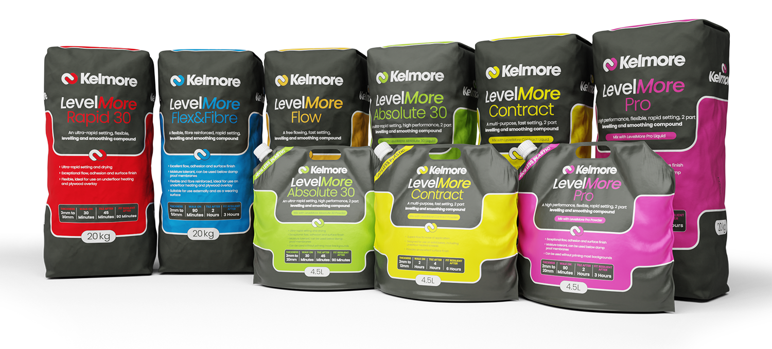 Kelmore’s LevelMore range of levelling and smoothing compounds is designed to meet the diverse needs of the flooring industry. The range includes three water-based and three 2-part products, all formulated with a consistent binder system to deliver exceptional performance, quick walk-on and fit-on times and outstanding reliability.
