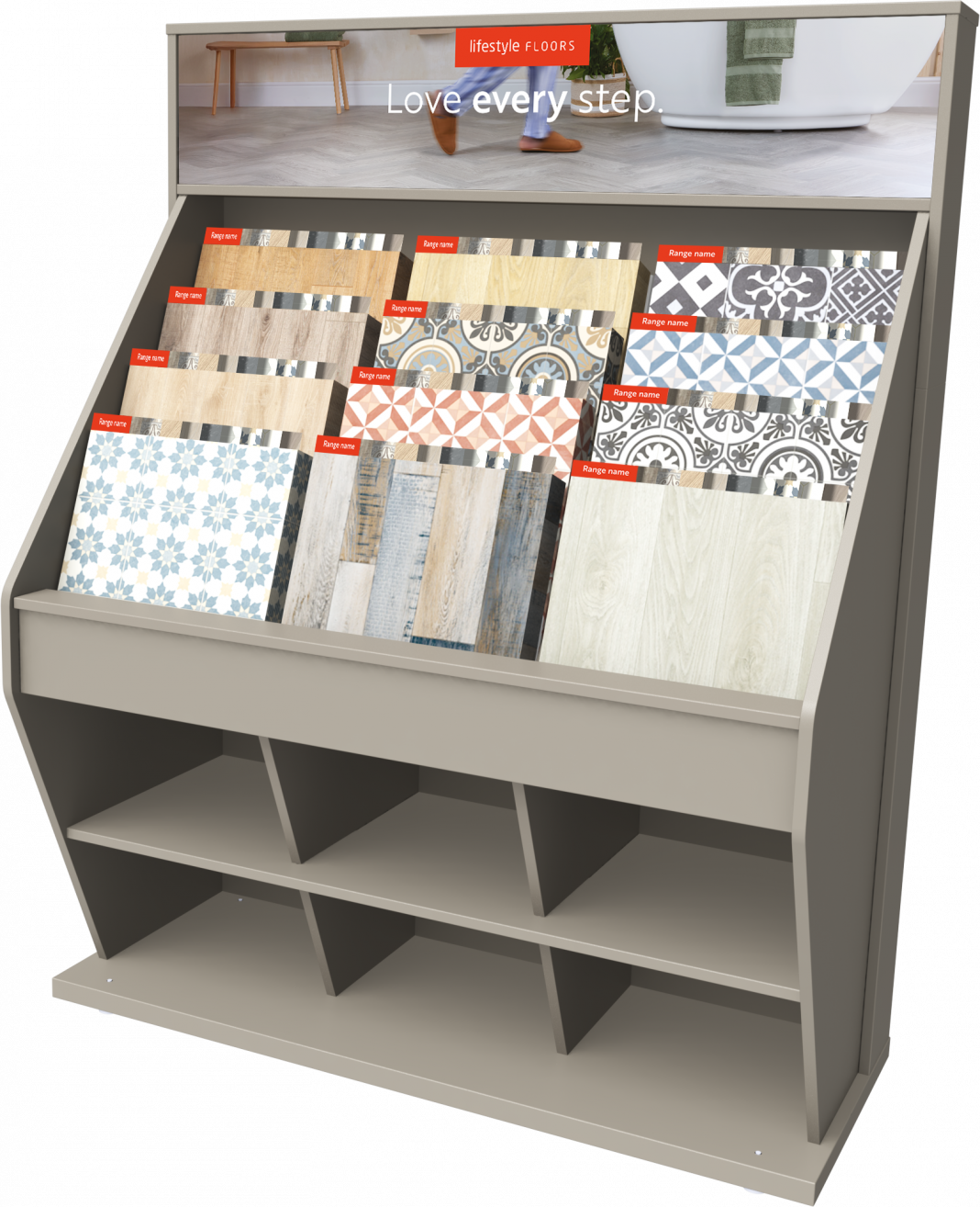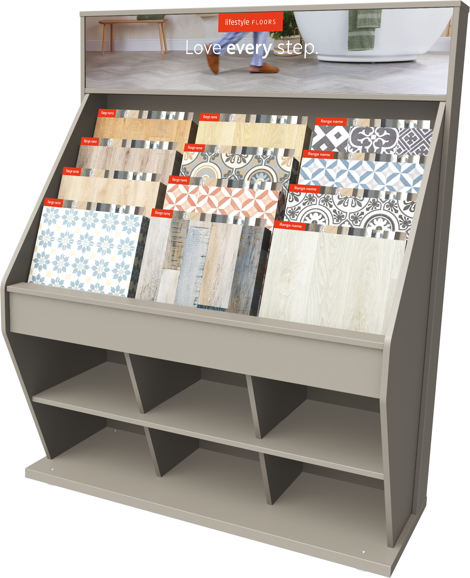 All units will come with enhanced, changeable display graphics, for an improved shopper experience and standardised 9×18 and 18×18 interchangeable carpets and swatch books. They will also boast removable inserts to display prices and more flexible fold-down sample book handles with clear range labelling for quicker identification. Wall units will also feature premium LED back-lit graphics to further attract customers.