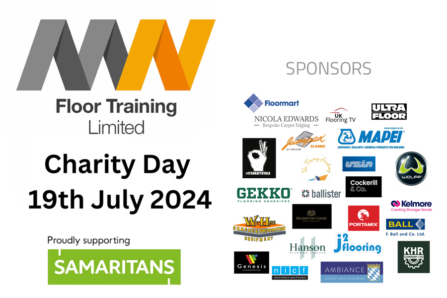 MN floor training limited are hosting a flooring charity day at Wolverhampton race course on 19th July 2024; in aid of supporting the Samaritans for mental health awareness and suicide prevention. We have currently raised over £13,000. The day will include live demonstrations from manufacturers, raffle giveaways, darts competition, charity auction and much much more. Wolverhampton Race Course, Dunstall Park, Gorsebrook Road, Wolverhampton, WV6 0PE, 9am – 4pm. For tickets or to exhibit at the event please call 07855400013 or email mnfloortraining@gmail.com.
