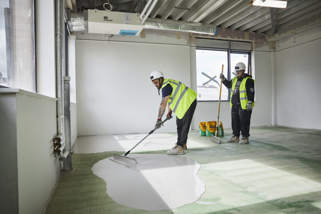 Contractors then applied Stopgap 1400 in all areas (over 5,000m2 in total). The product uses the latest cement formulation technology to maximise ease of application. It is walk-on hard from just 90 minutes after application and ready to receive floorcoverings from 12 hours.
