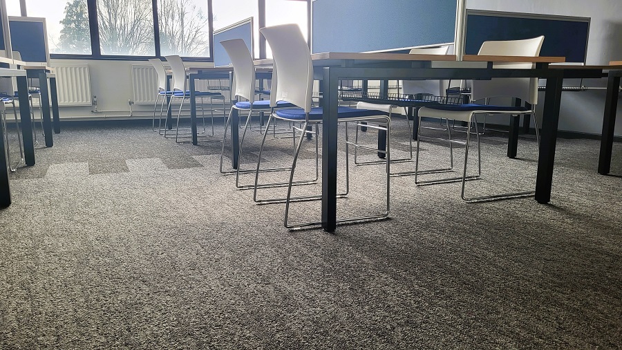 Refurbishment works have been completed at Royal Grammar School High Wycombe using Rawson Carpet Solutions structured nylon carpet tile solution called ‘Riven’ which is said by the company to have been manufactured carbon neutral and is ‘a competitive, heavy weight, luxurious carpet tile solution for the education sector’.