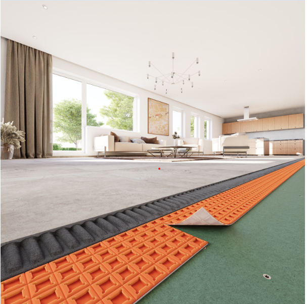 The 4mm electric cables or water pipes push-fit into the studded, fleece backed membrane which acts as both an insulating carrier and an uncoupling layer to help distribute stresses within the build-up: reducing the risk of tiles cracking. The two Schlüter®-Systems UFH options also offer sound transmission reduction of up to 13 dB.