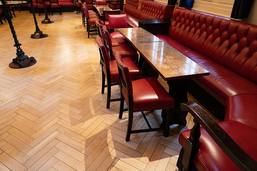 The oak parquet floor needed a full renovation after 15 years of wear, tear and the odd invitation only party or two. A key aspect of the specification was minimal downtime and a premium finish for the floor. The renovation needed to be handled in a timely manner and with minimal disruption as the location needed to be ready for a swearing in of the Yeoman celebration shortly afterwards.