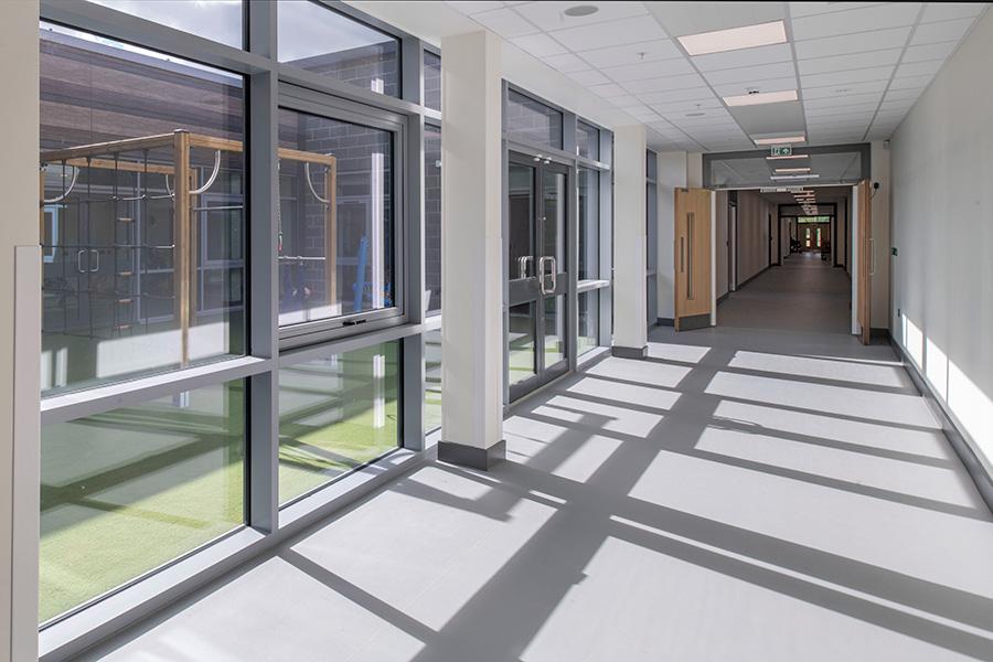 Sunningdale SEN School is the city’s only specialist school for children with severe, profound and multiple learning difficulties, aged 2-11. The new school replaces an existing facility and now provides extensive therapy provisions including rebound therapy, hydrotherapy pool, sensory facilities and soft play. Each of the new classrooms includes a large storage area for mobility equipment and, across the wider site, the school benefits from informal play and grass playing fields, alongside a wetlands area, nature trail and habitat area.