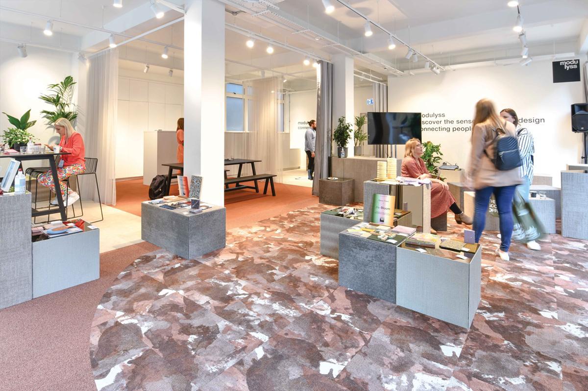 The company continued: ‘Visitors across the three-days explored a fantastic array of innovative and sustainable materials curated by Laura Perryman, set against a backdrop of some of the Belgian carpet tile brand’s most distinctive designs. There was also opportunity to discover how by taking a leading approach to the environment – it’s a long-time partner of Healthy Seas, has the CO2RE offset programme and holds 28 Cradle to Cradle Certified Gold products – modulyss is at the fore of sustainable carpet tiles for today’s office spaces.’