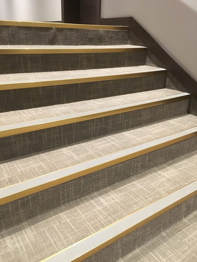 Satin Gold nosings were chosen to accompany the existing furnishings and add another touch of grandiosity to the luxury residential development.