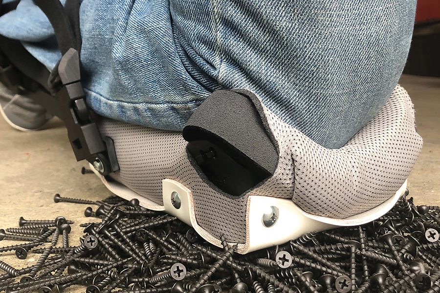 4) Says ProKnee: ‘Another popular belief is when a carpet installer kicks a knee kicker, the force of the thigh against the pad on the knee kicker is the damaging factor. The real stress from kicking is, when the thigh strikes the knee kicker, the weight of the whole body is multiplied and then transferred straight down. This extremely compresses the thin layer of cartilage and meniscus located in the knee joint area, thus causing the assortment of knee problems mentioned above. Add to that all the turning and twisting that takes place while walking around on your knees and you can see why so much damage can occur.’