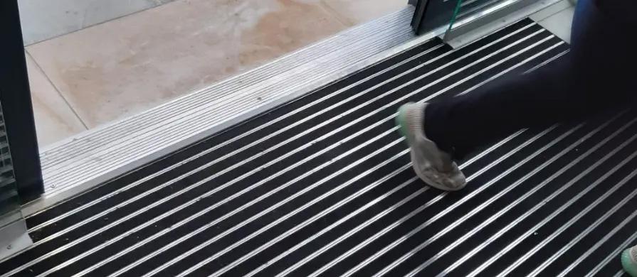 Two mats were needed, both 2.5m by 2.5m. The entrance matting would need to be durable, and effective at removing debris from both foot traffic and wheeled traffic. This is vital, as many trips, slips and falls occur in buildings where mud, dirt, water, and other detritus has created an unsafe surface, particularly in entrance areas. The stair nosings needed to be slip resistant, safe, and long lasting.