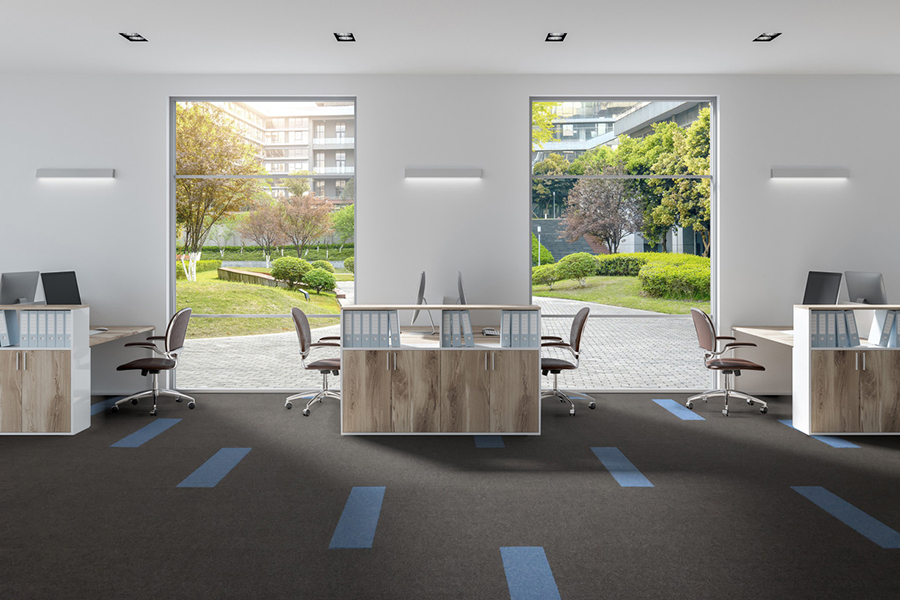 As Rawson Carpet Solutions puts this product is a fully recyclable carpet tile. ‘No landfill. No additives. No latex. Single polymer. Made from 80% recycled material.’