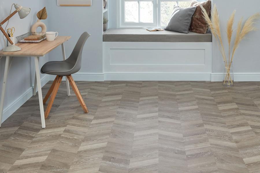 The collection now includes two fashionable, staggered chevron wood effect options. In addition, there are six wood effect planks designed to reflect the grain detail of natural timber and five stone effect tiles, reproduced with a lightly textured surface. Offering all the attractions of wood and stone without the practical drawbacks of natural materials, the PU coated vinyl tiles and planks are exceptionally durable.