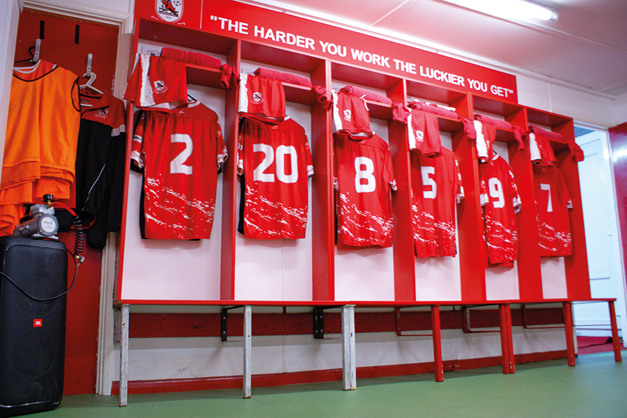 Club sponsor Avenue Flooring, based in Surrey, used F Ball’s Stopgap 1200 Pro smoothing compound and Styccobond adhesives to install floorcoverings as part of the refurbishment of the main changing rooms at the WW Martin Community Stadium, undertaking the work for free. Fast-track products meant this could be completed between fixtures.