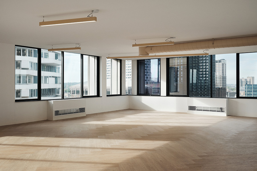 Typically, carpet tiles or exposed raised access flooring are the go-to solution in these scenarios, however with a premium design required, Oktra opted for something different, as Danielle La Porte, designer at Oktra explains: ‘Akoya wanted to create a range of category A office suites that would be memorable to tenants, while also meeting sustainability requirements. With this brief in mind, we specified Forbo’s Allura Flex LVT, which is available in a range of elegant colourways and wood effect designs – perfect for this project!