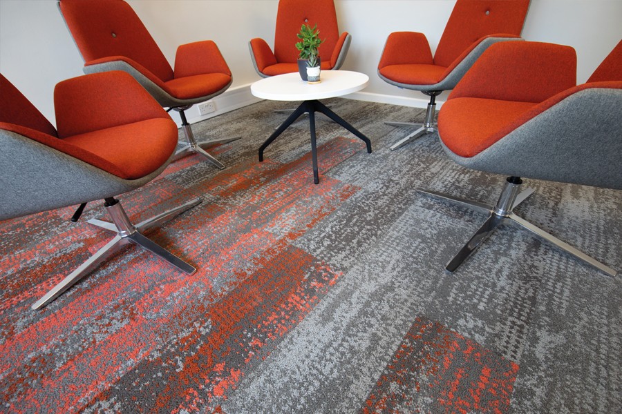Says Shaw Contract: ‘Not only does it provide a luxurious feeling and texture for visitors, but also is in keeping with the client company’s use of ‘Veolia’ red so provided a familiar link to the company’s strong branding.