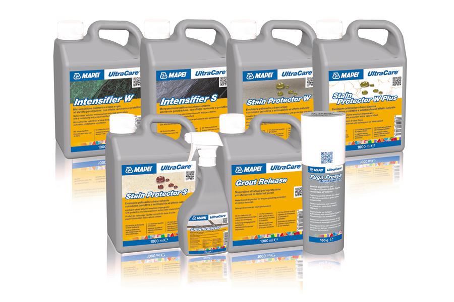 - UltraCare Stain Protector W Plus: water-based impregnator providing protection and anti-stain properties, suitable for use on all finishes of natural stone, terrazzo, agglomerates, brick, terracotta, and polished porcelain