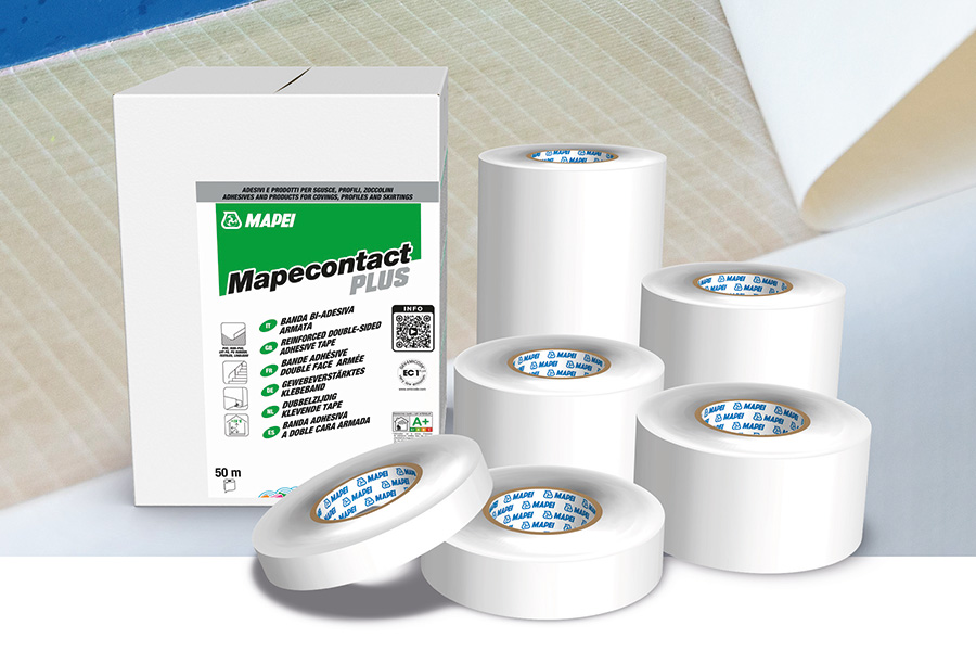 MAPEI has introduced Mapecontact Plus – a new solvent-free, double-sided reinforced adhesive strip for fast-track installation of accessories, resilient and textile flooring.