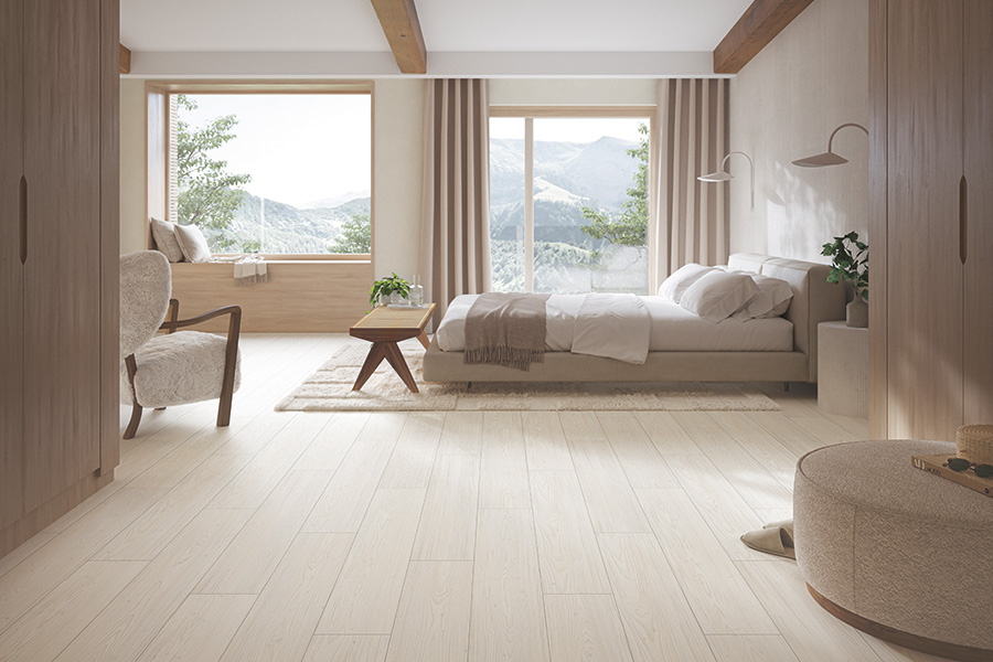 Invite the beauty of nature into your interior with our Chalet collection. Imagine, extra-large windows with a mountain view, open living spaces with cosy armchairs surrounding a fireplace. For the flooring, wide planks in light tones with large organic grains showing are perfect for the Scandinavian inspired interior.