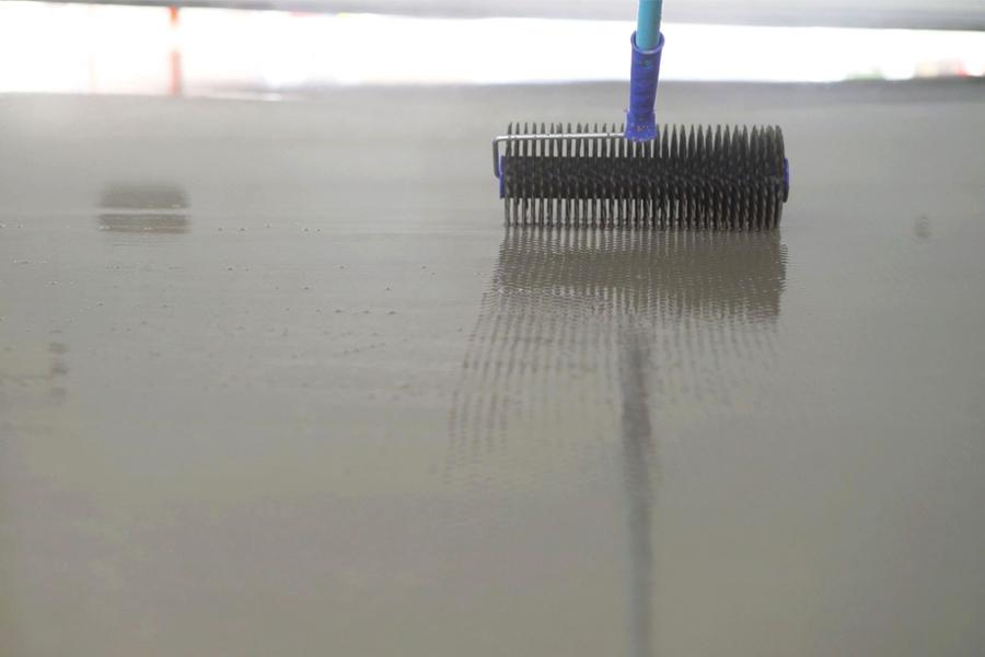 Once cured, Prime IT Multi-surface Primer was applied across the 540sq m before applying Level IT Two at a 3mm depth.