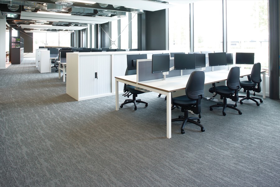 The light, open-plan office space is designed to Cambridgeshire’s brief of accommodating fixed and flexible workstations. Natural colours along with the structured pattern of the Riven range installed by Northants Flooring help lighten the modern, comfortable workspace and contribute to a pleasing aesthetic.