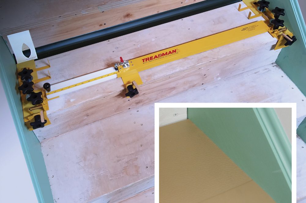 What the industry needed now was a standardised tool that could be set up fast and accurately by tradesmen of all skill levels. In 2011, ProKnee Corporation combined the mechanical features of a stair tread jig with pattern scribing templates and called it Treadman Multi-Angle Stair Tread Cutting System. Treadman quickly adjusts and conforms precisely to each individual step and securely locks in your steps’ and treads’ specific size and identical dimensions that you will be cutting your tread to.