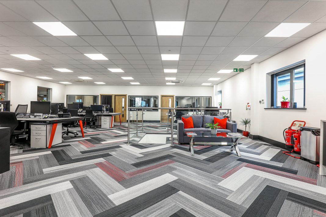 Commenting on the installation of the Gradus Urban Myth carpet planks, Josh Freedman said, ‘We had to conduct the refurbishment works. whilst our warehouse was still in operation, and the staff were ‘enjoying’ the rewards of working in several containers, whilst enduring the’ thirty-five plus heatwave. We had the usual build issues; however, the Gradus Urban Myth flooring from Gerflor went down with ease, perfectly and on time. The planks were extremely easy to install and randomly lay.’